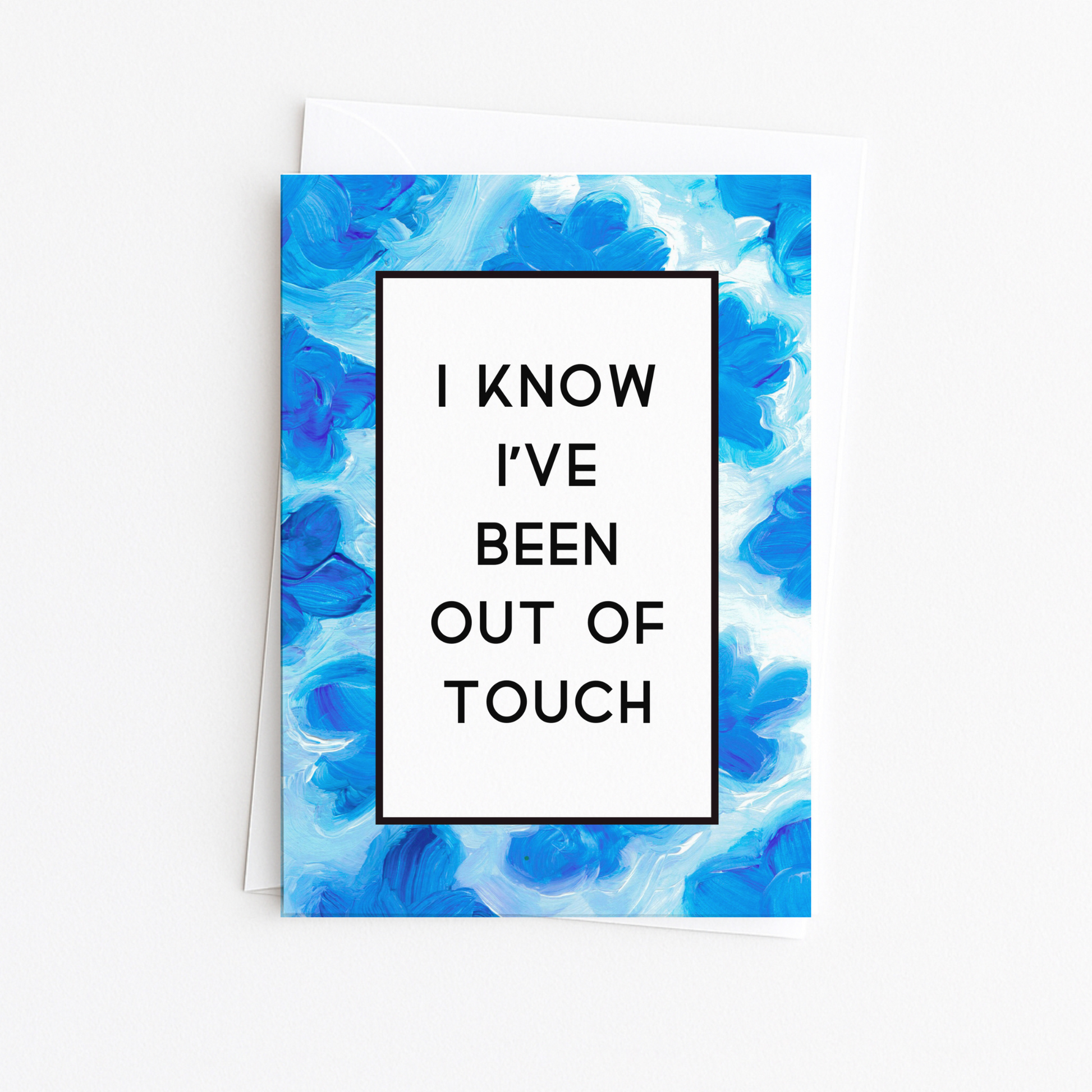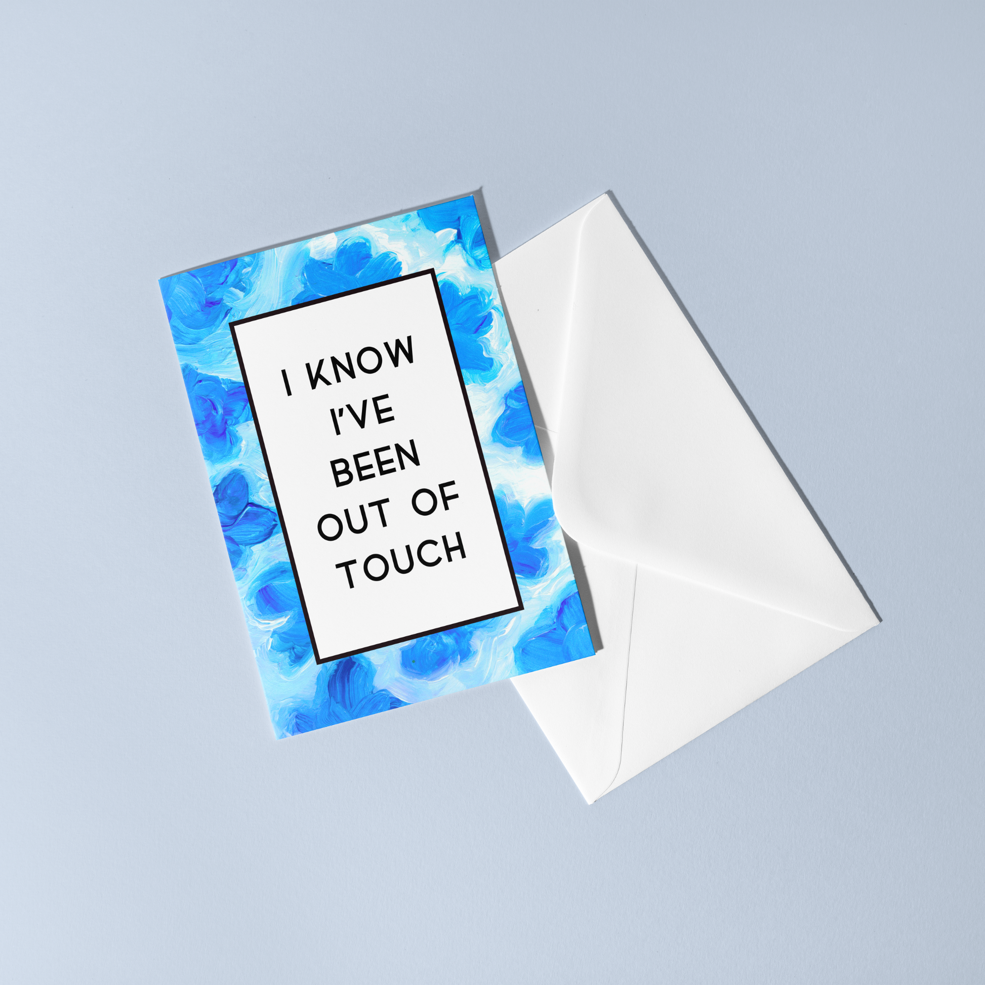😞 Reconnect with someone special with this thoughtful handmade greeting card featuring a calming hand-painted blue design and the heartfelt message, "I know I've been out of touch."