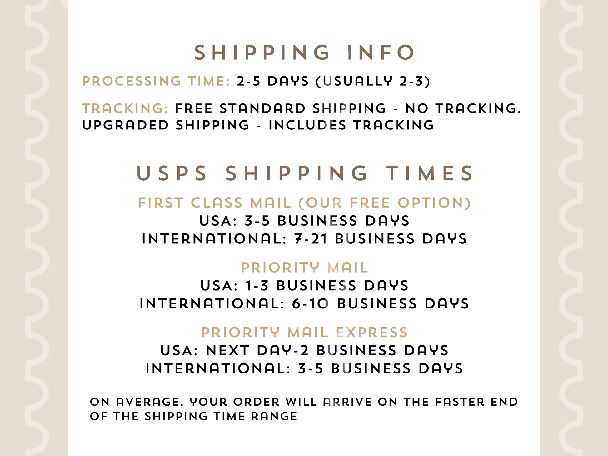 Making products on demand instead of in bulk helps reduce overproduction, so thank you for making thoughtful purchasing decisions!