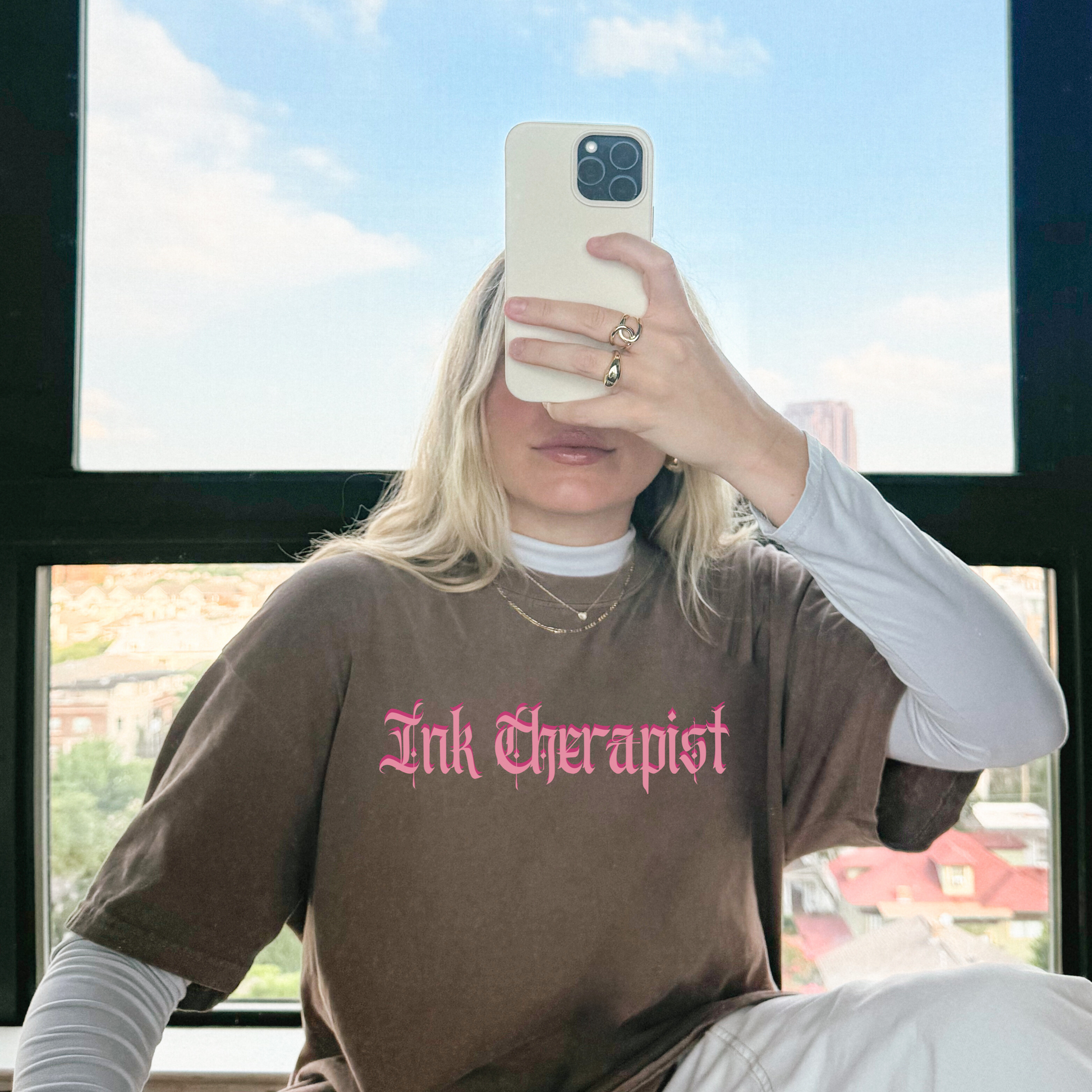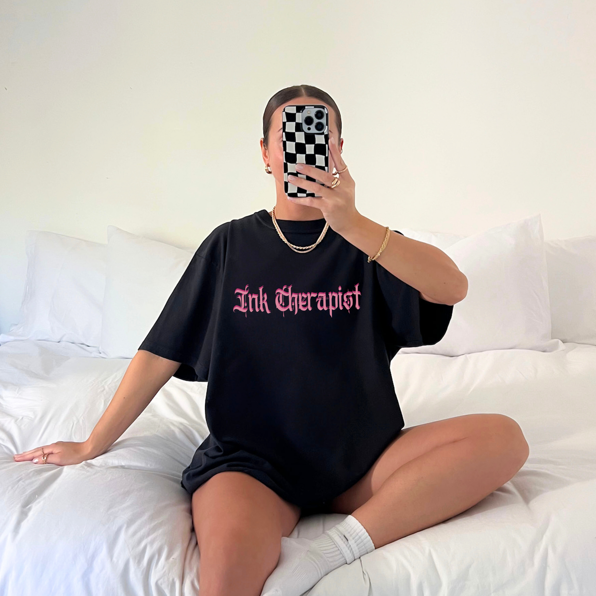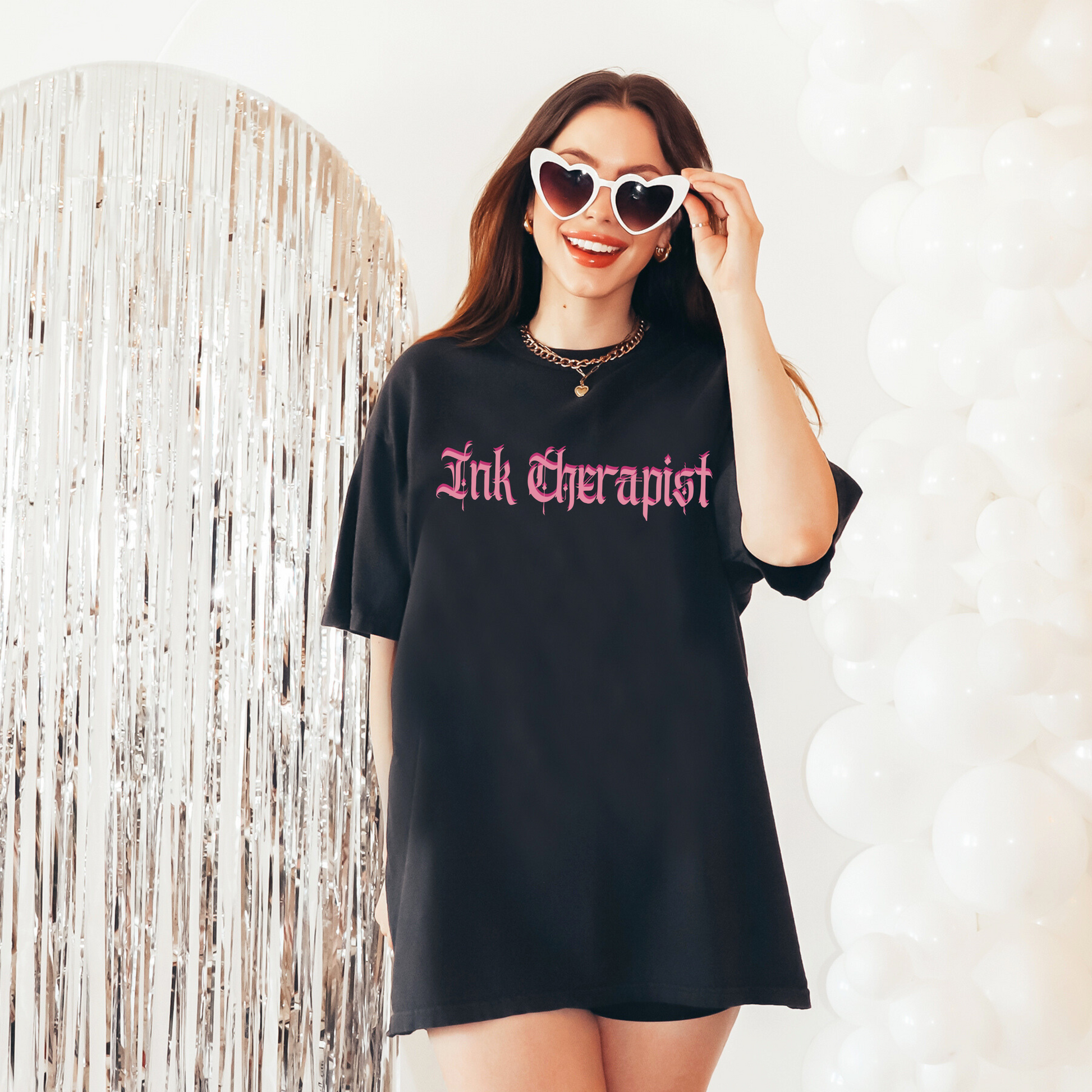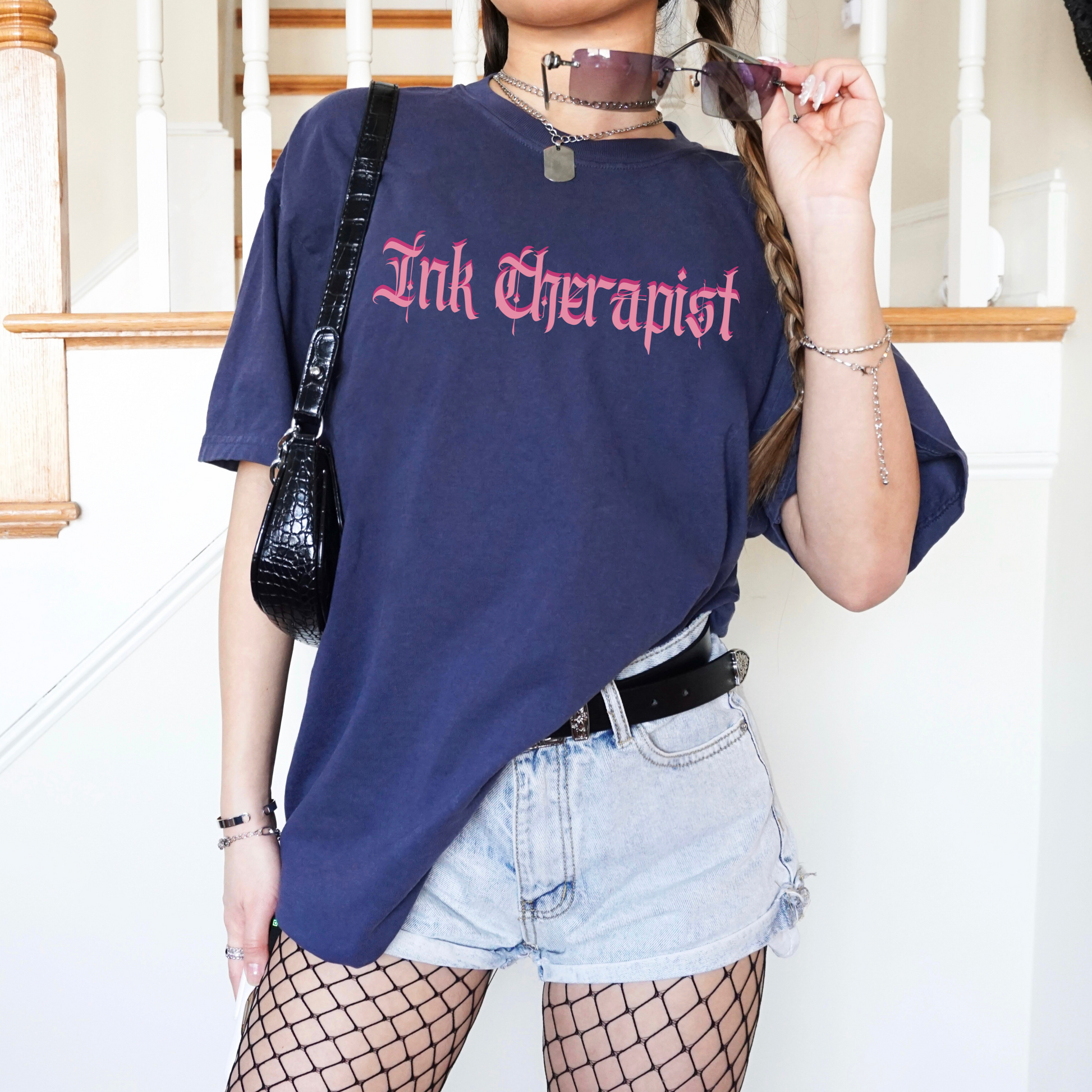 Our βInk Therapistβ tee is the perfect blend of edgy, gothic, and pink. Whether you're working the chair, sketching flash, or just hanging with your crew, this shirt brings a little humor to the very real role of an emotional support artist.