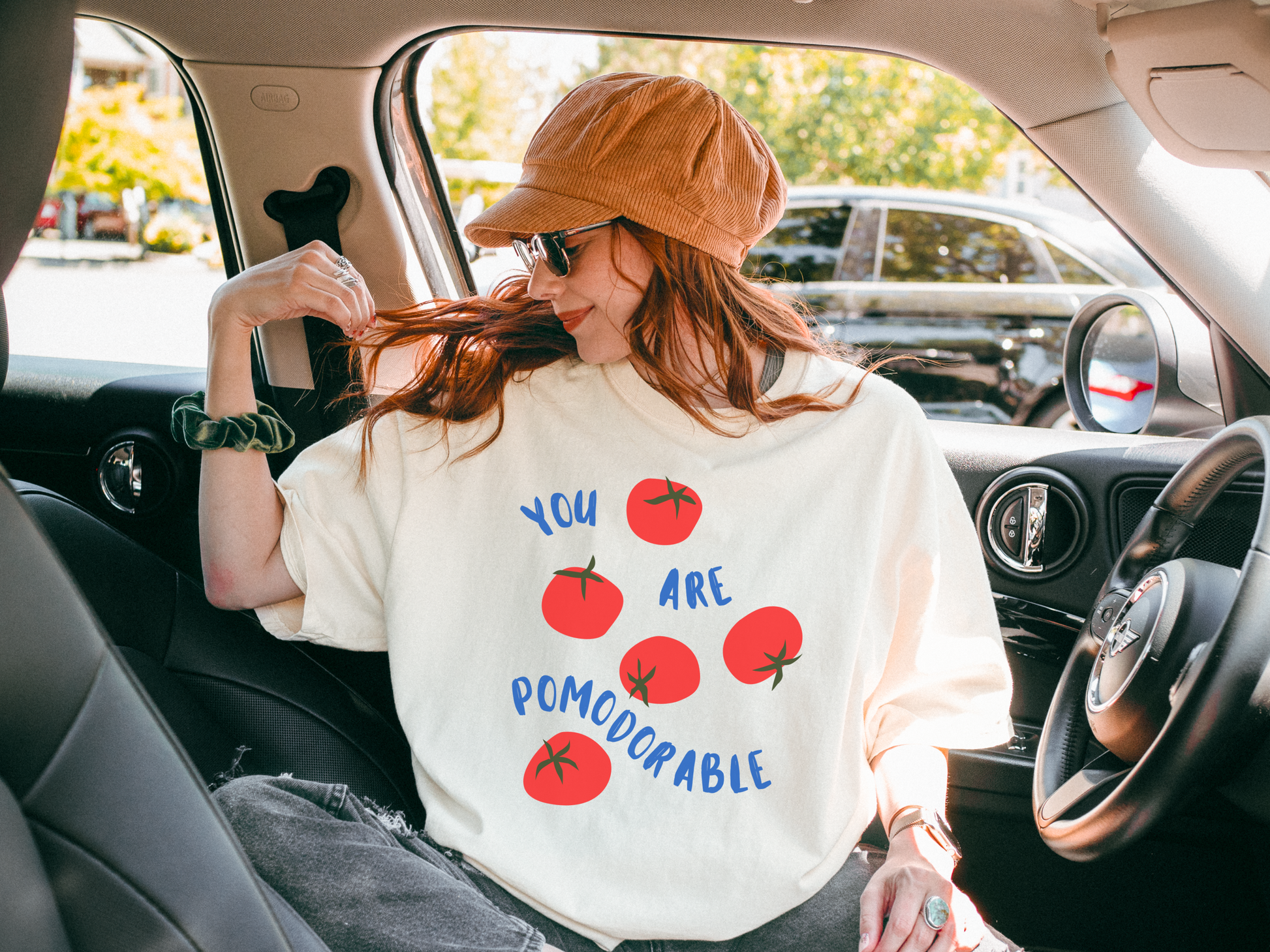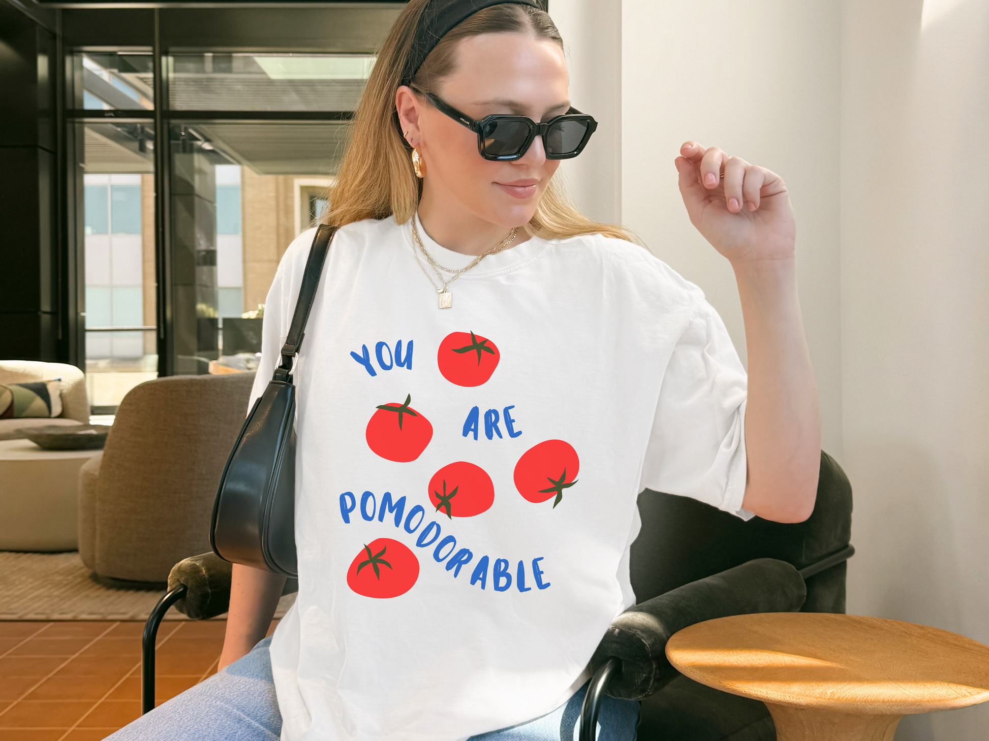 Letโs be realโyou are pomodorable. This cozy tee is perfect for foodies, pun-lovers, creatives, and anyone who enjoys a little humor with their productivity hacks. Featuring tomato artwork and the playful phrase โYou Are Pomodorable,โ this shirt makes a sweet and cheeky gift for friends, coworkers, or yourself!