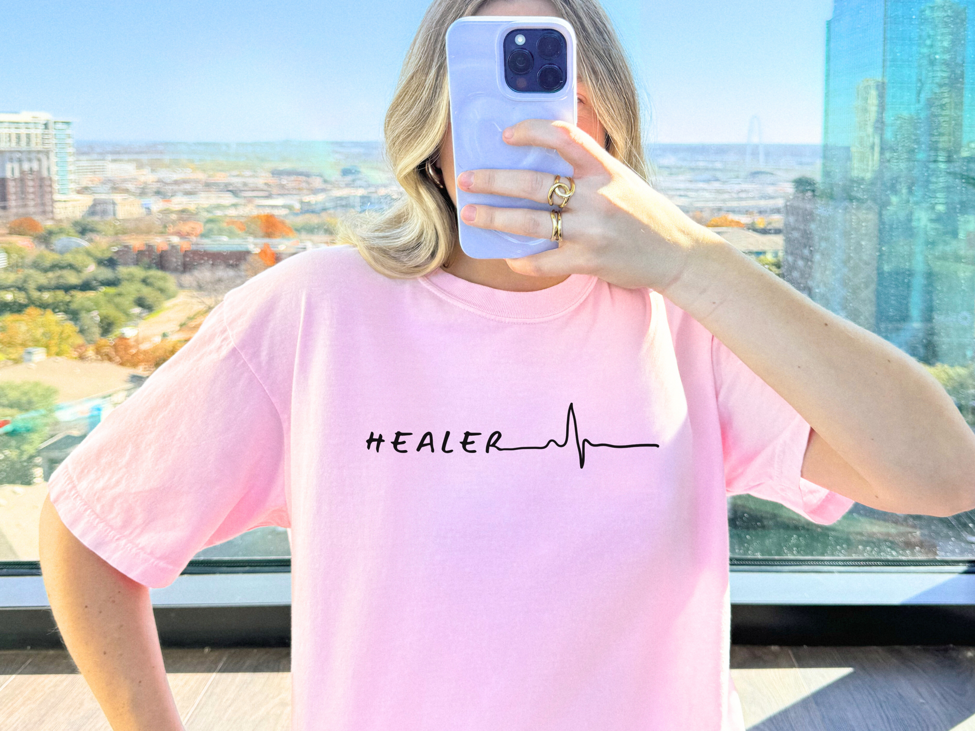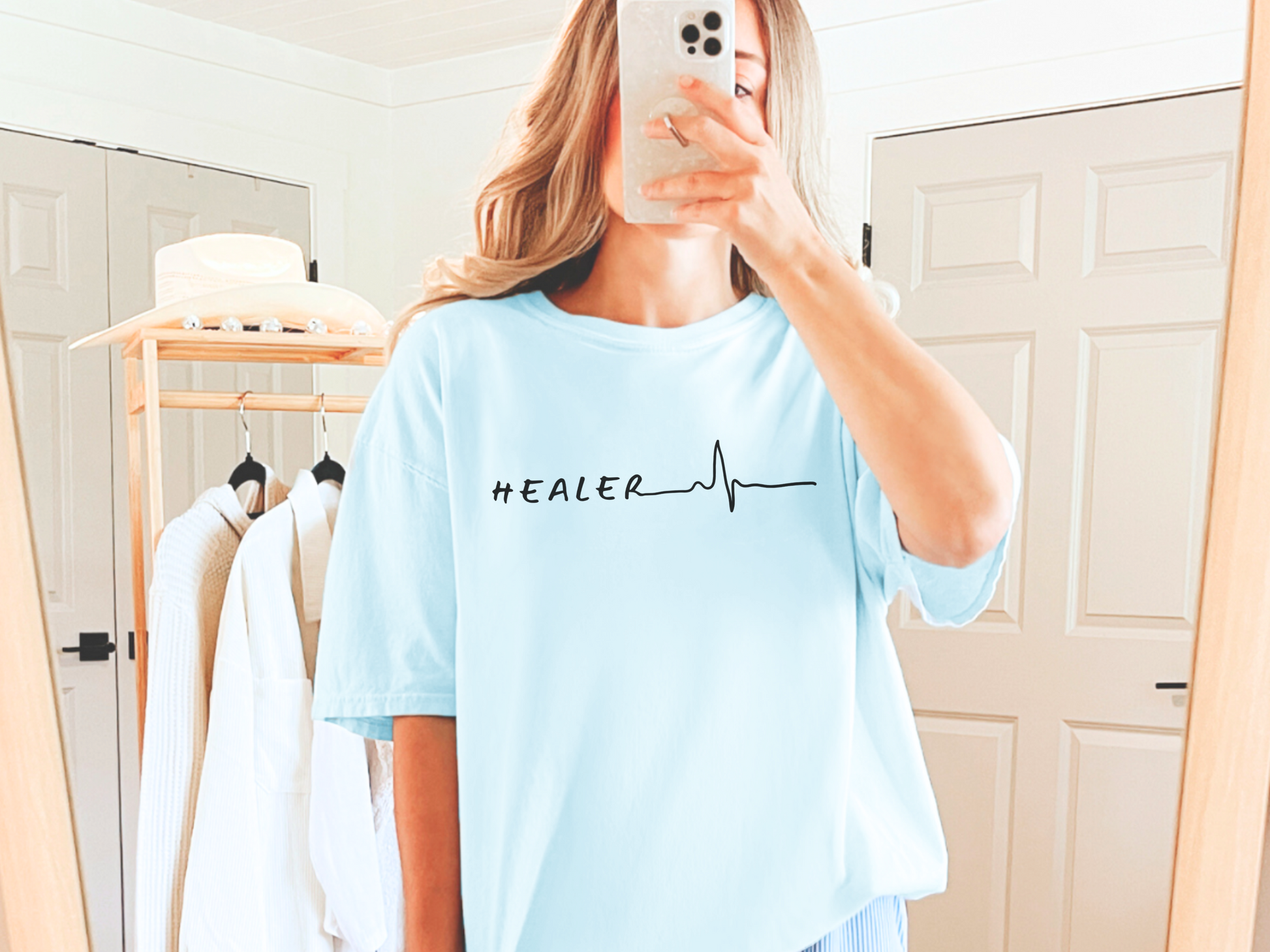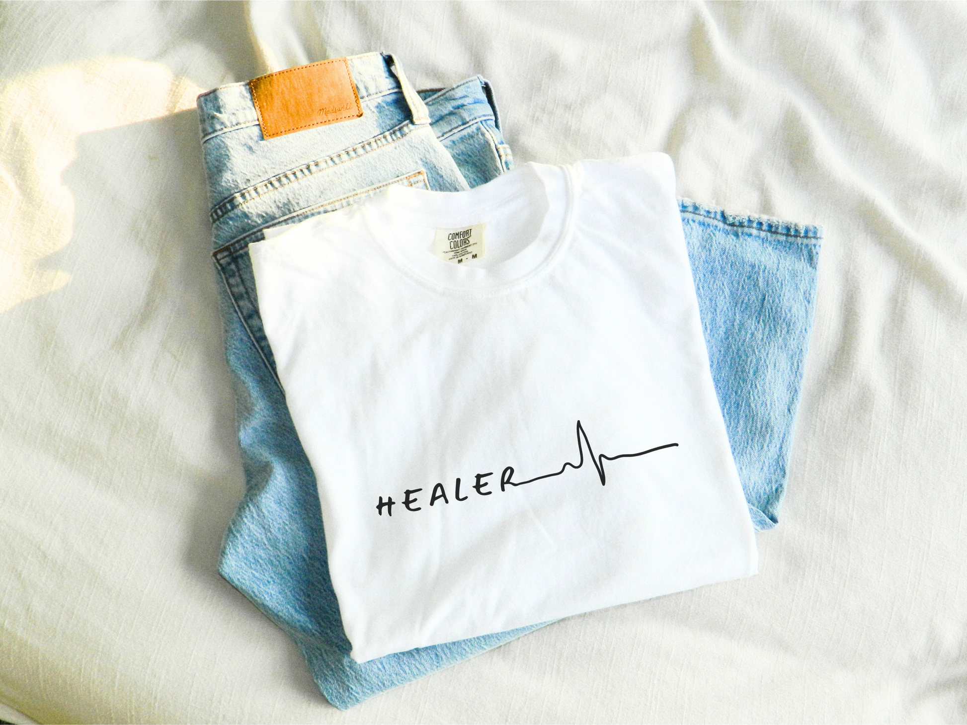 Simple, powerful, and deeply true—our “Healer” tee is a tribute to the people who hold hearts, mend wounds, and show up when it matters most. Featuring the word Healer woven into a heartbeat line graphic, this shirt quietly honors the strength and compassion of medical professionals everywhere.