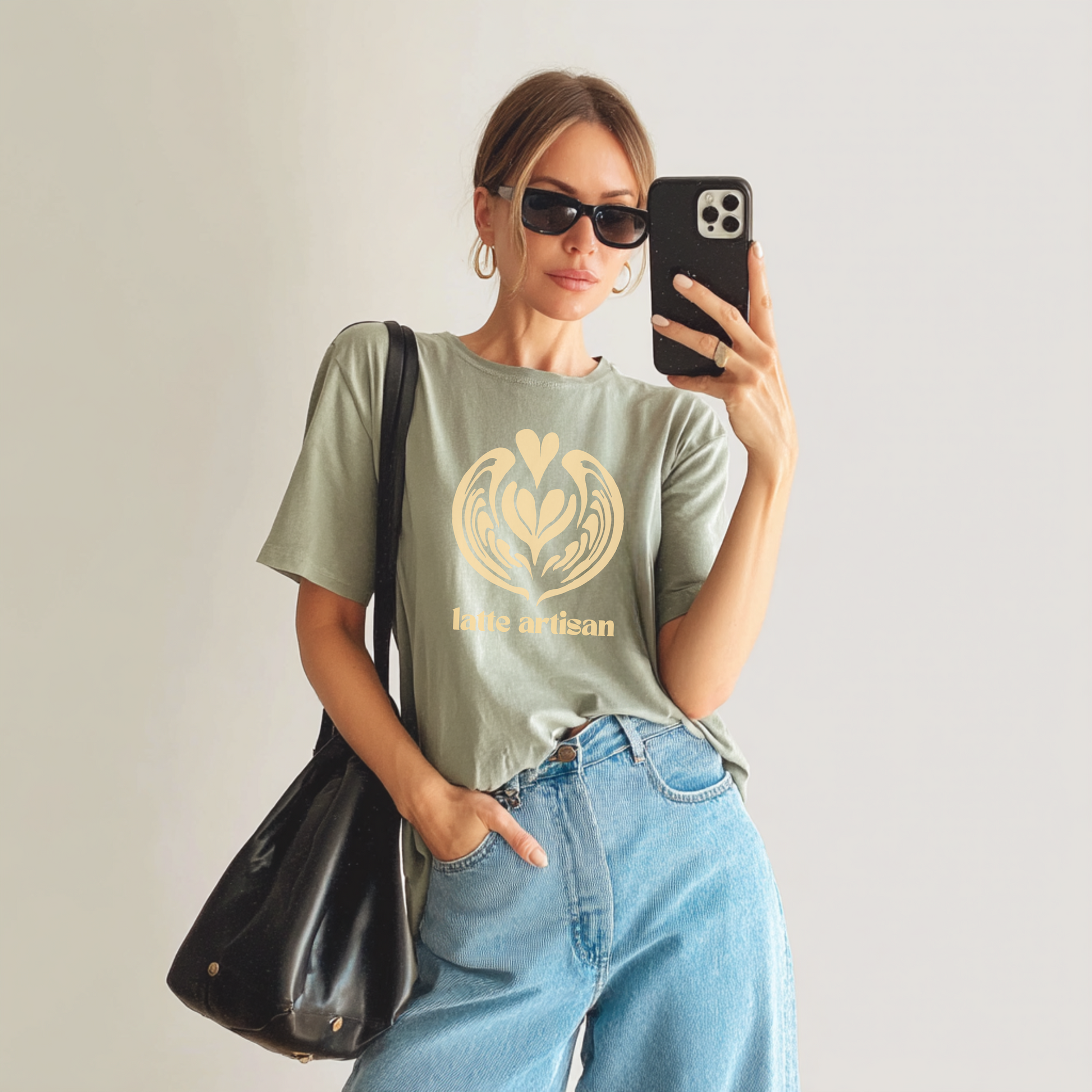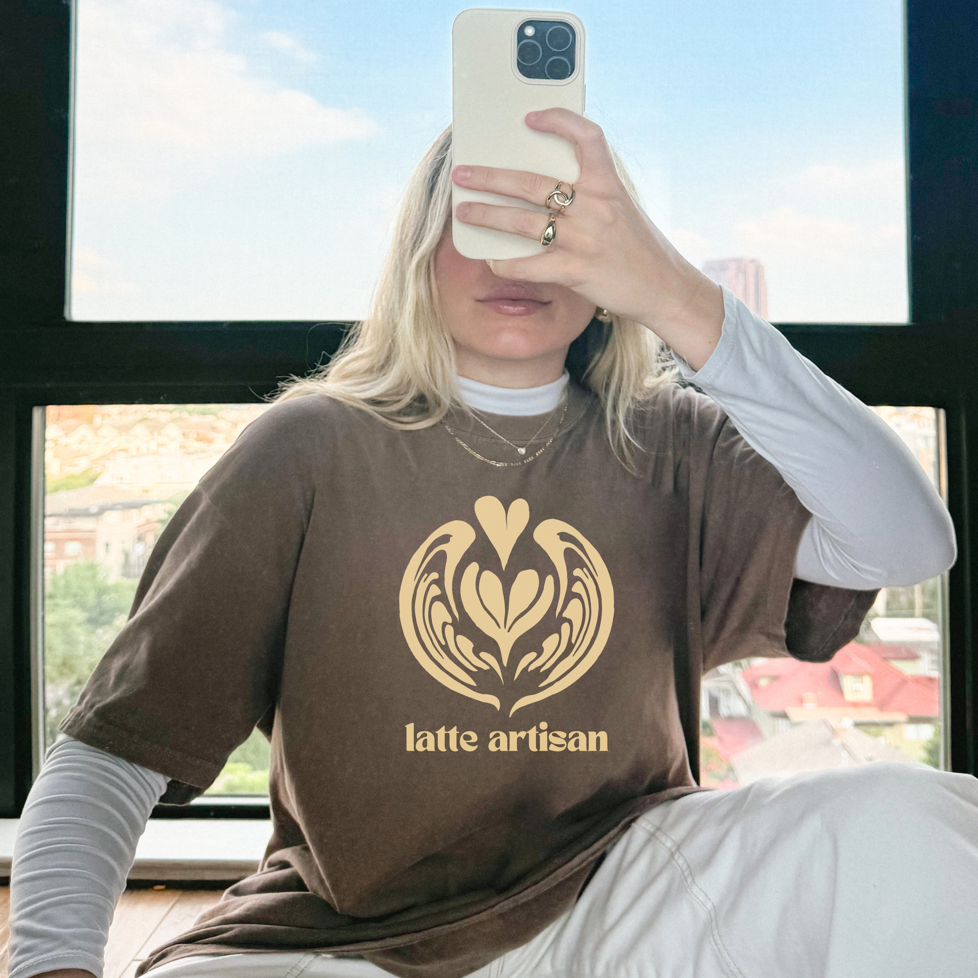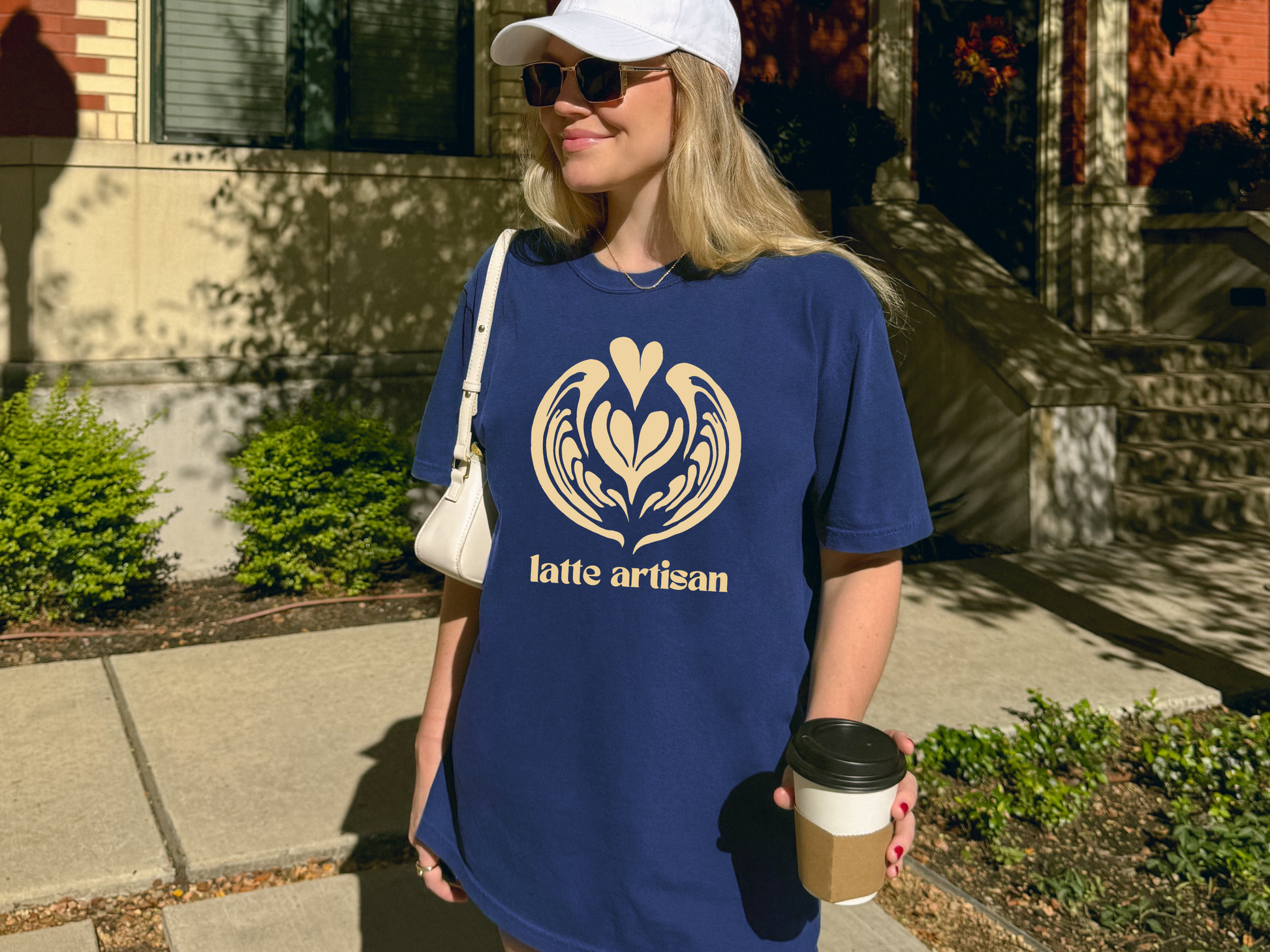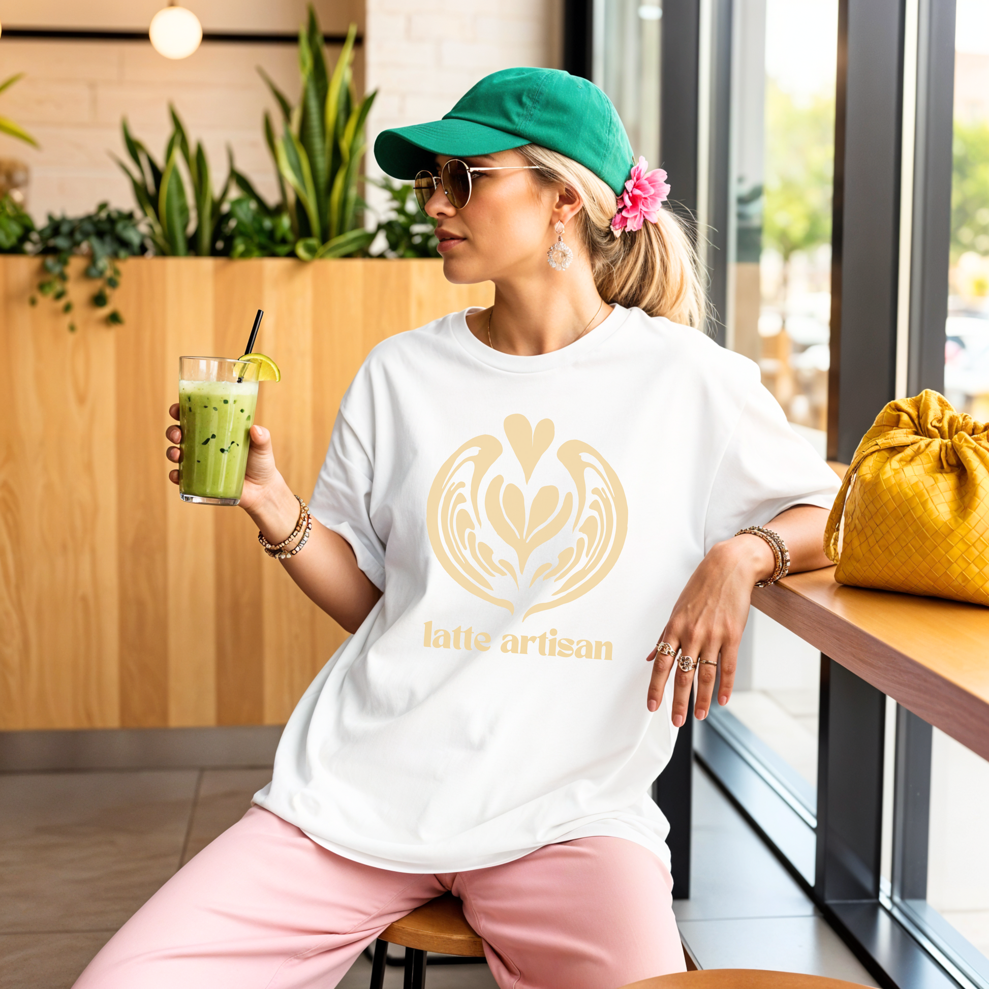 For those who treat their morning brew like a masterpiece. Our “Latte Artisan” tee is made for coffee lovers who know that crafting the perfect cup—especially with that silky swirl of latte art—isn’t just a routine; it’s an art form.