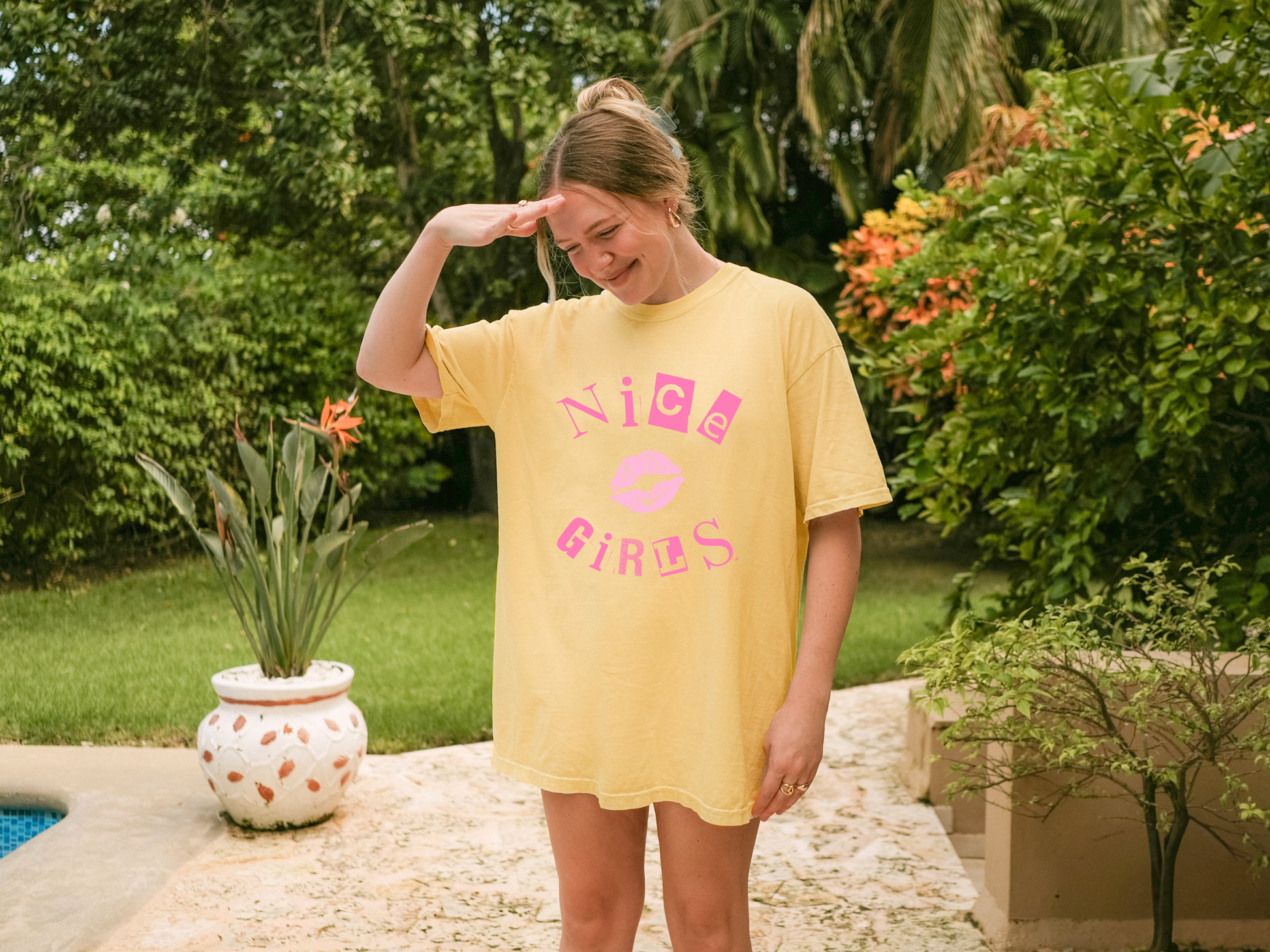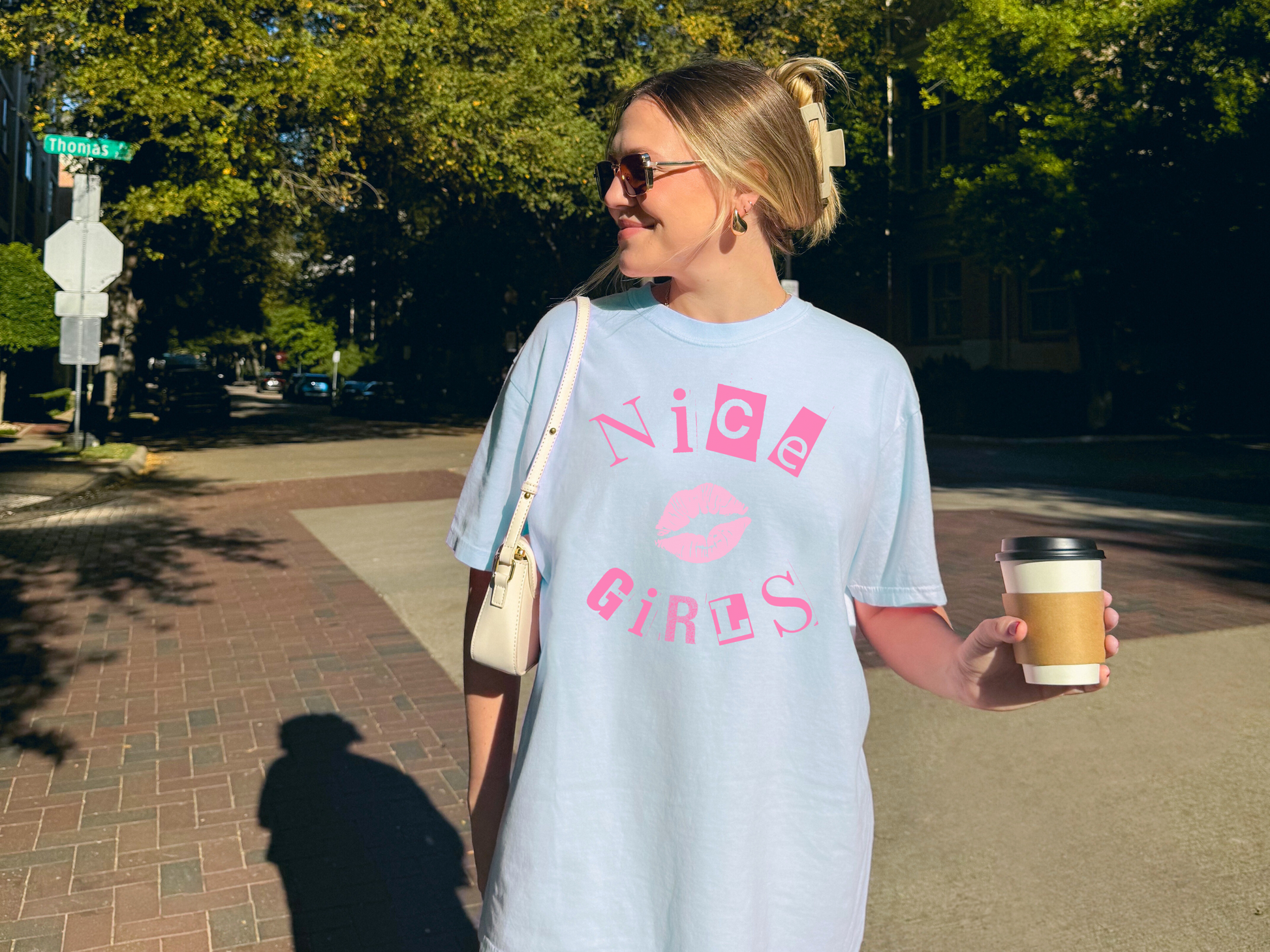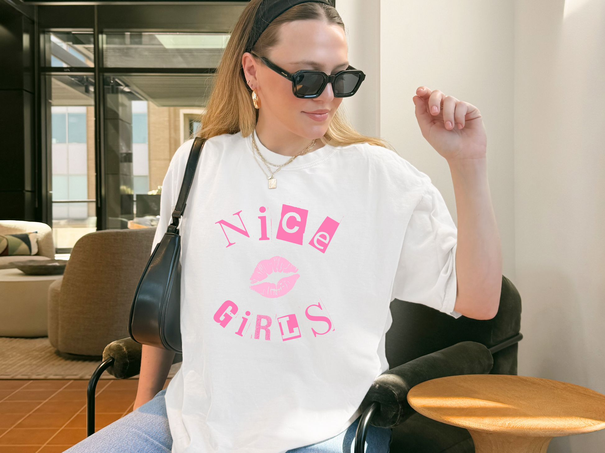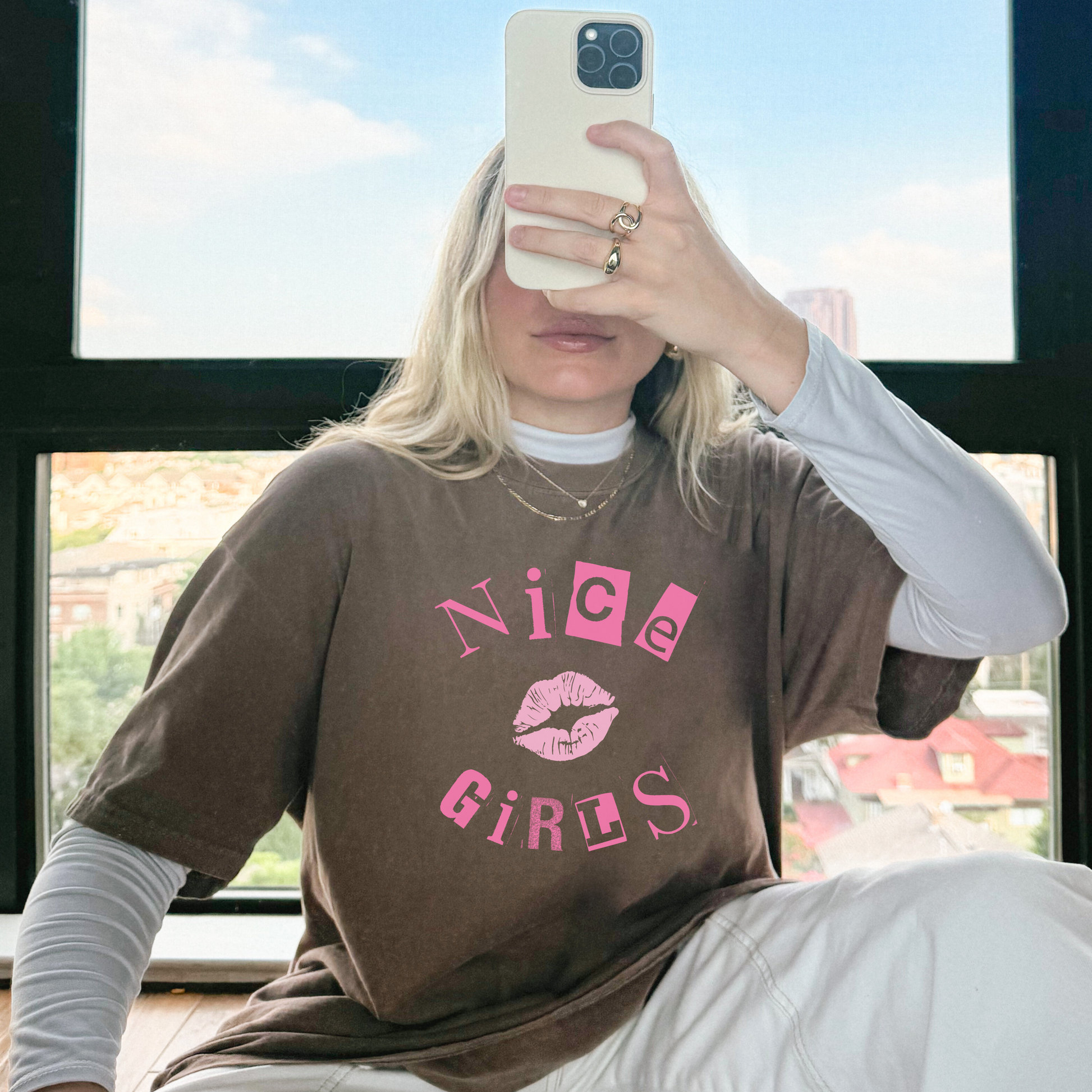 You can sit with us. Our βNice Girlsβ tee is a soft and sassy remix of the iconic Y2K Mean Girls vibeβwith a positive twist. Featuring bold, movie-inspired lettering and a cute kiss graphic, this shirt is all about being kind, confident, and a little bit iconic.