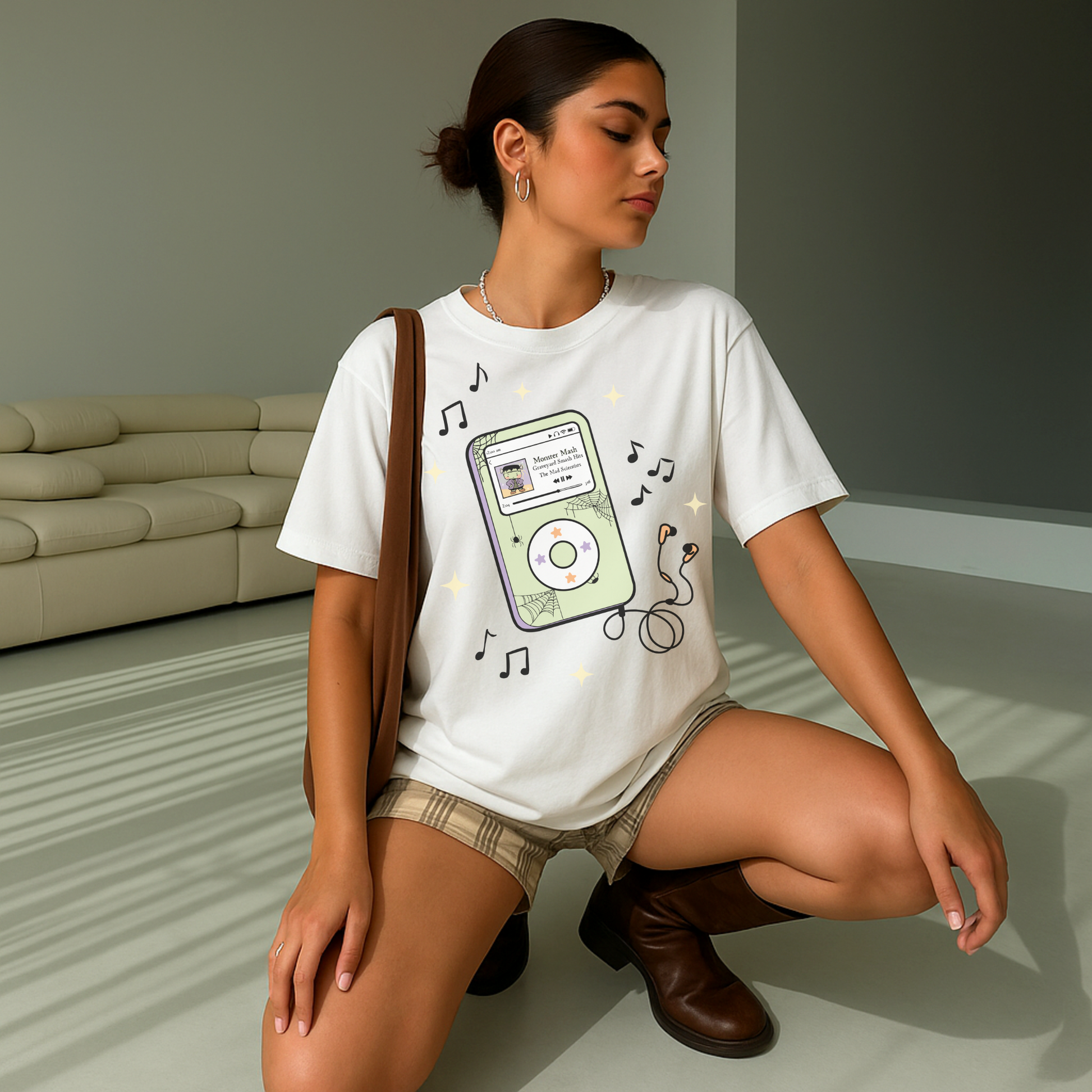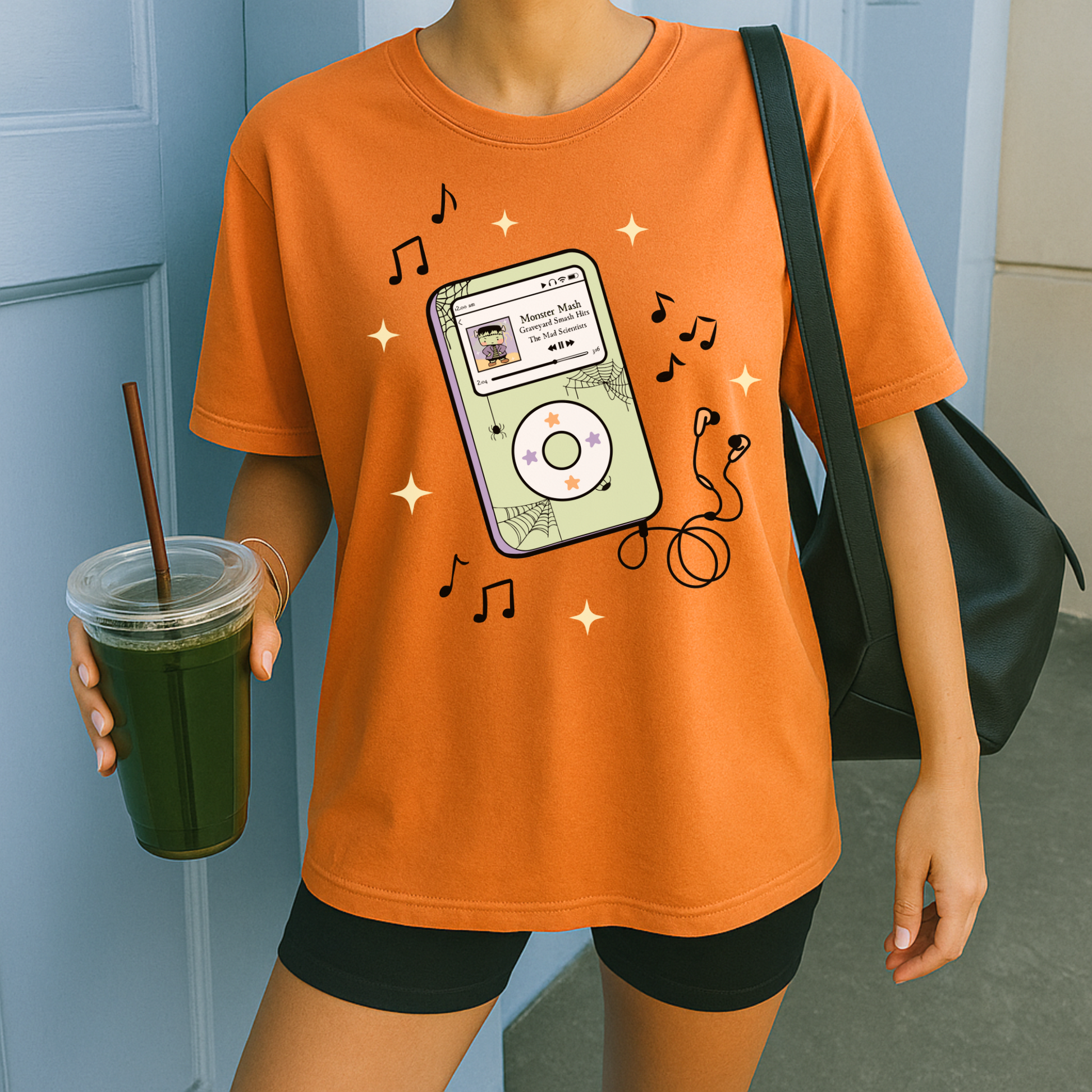 🎶 Bring back the throwback vibes this spooky season with this Retro iPod Halloween Tee!