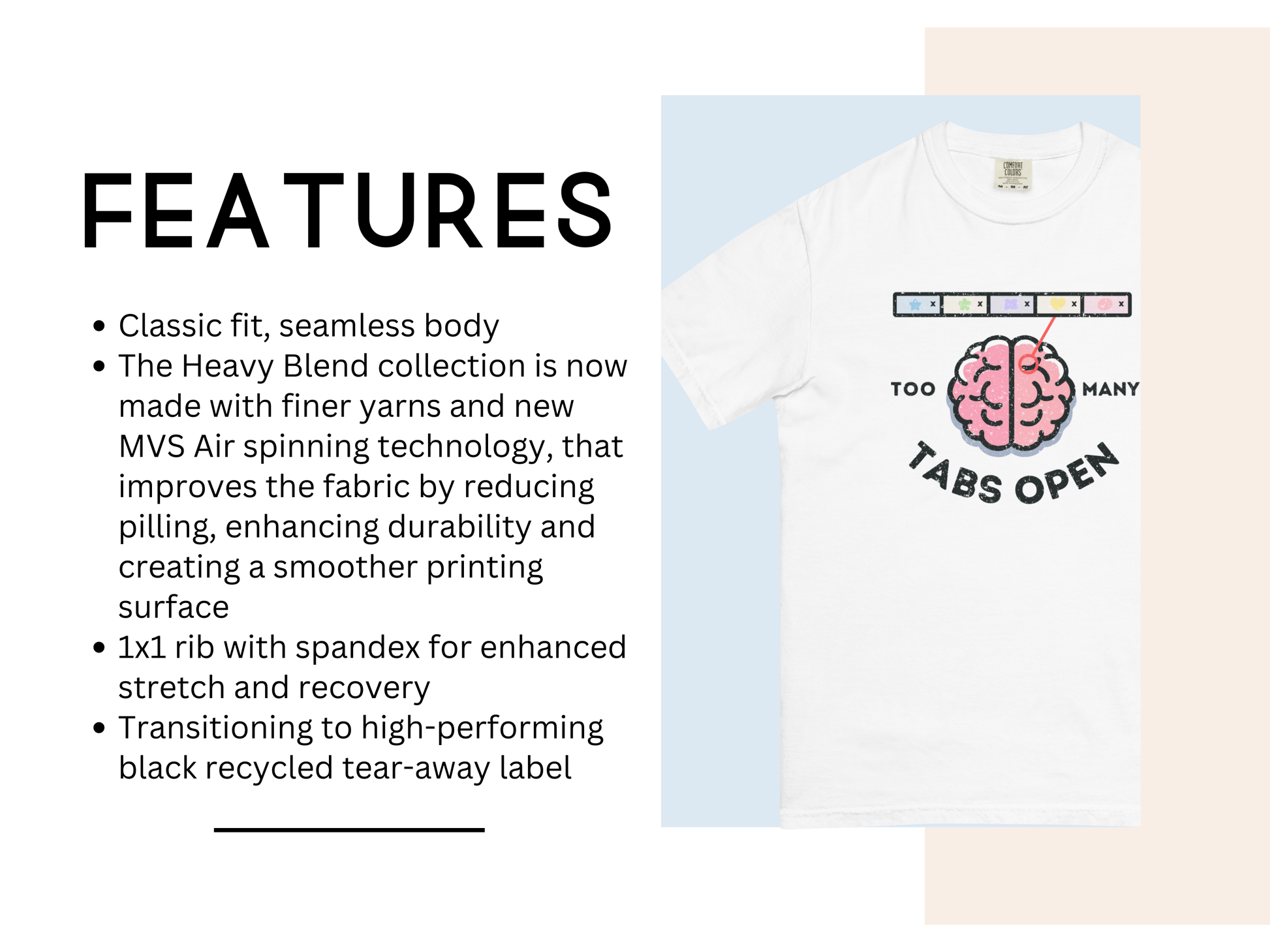 Do you ever feel like your brain is juggling way too many tabs at once? This cozy and relatable Gildan 18000 heavy blend sweatshirt perfectly captures that feeling with a funny and artistic design of a brain surrounded by internet tabs and the phrase "Too Many Tabs Open." It’s cute, quirky, and oh-so-comfy—perfect for those who know the struggle of multitasking minds!