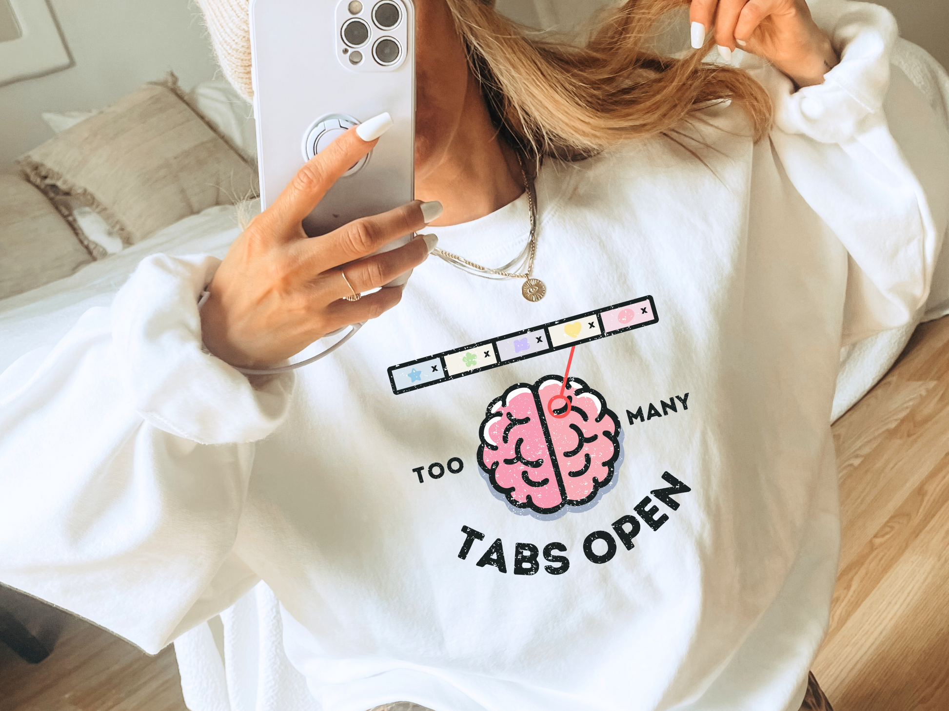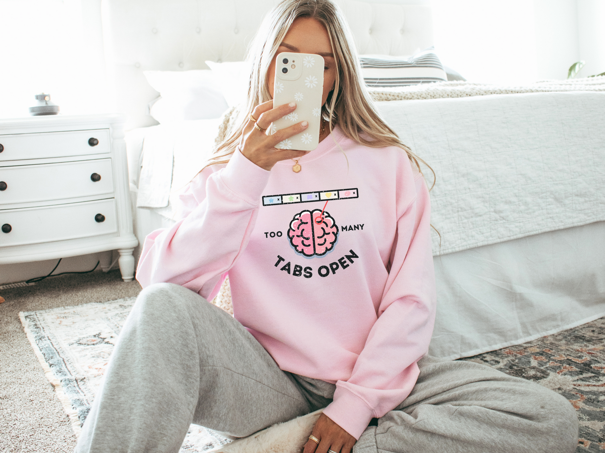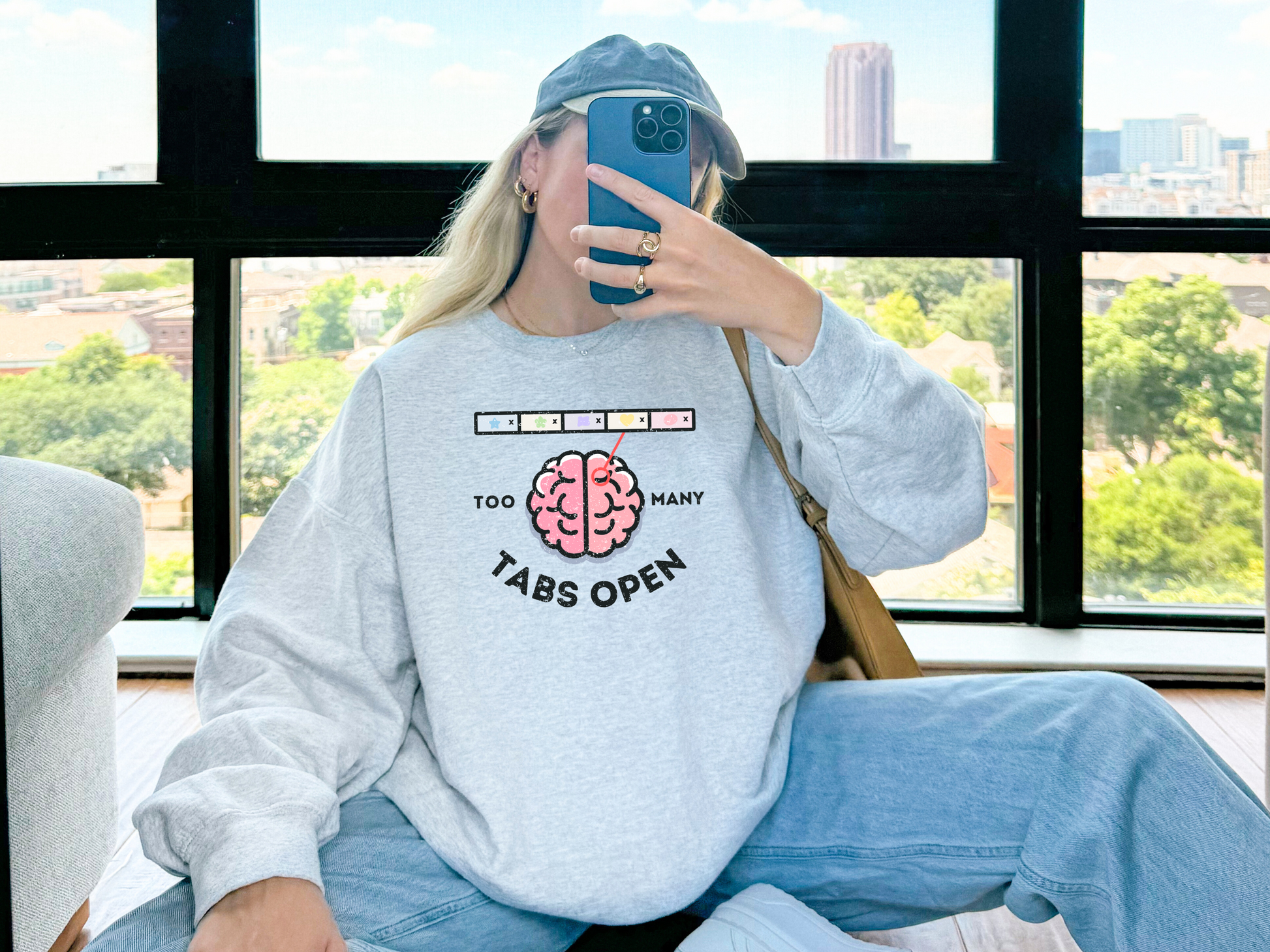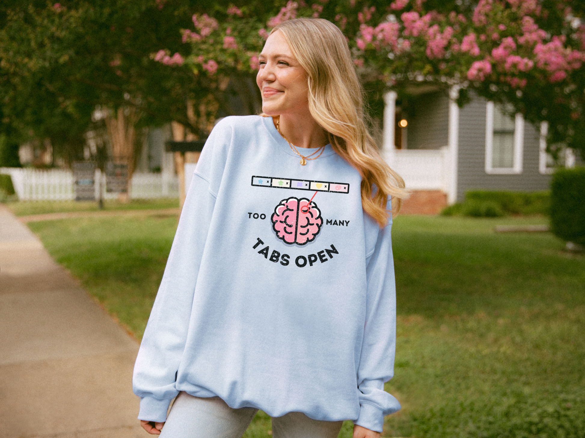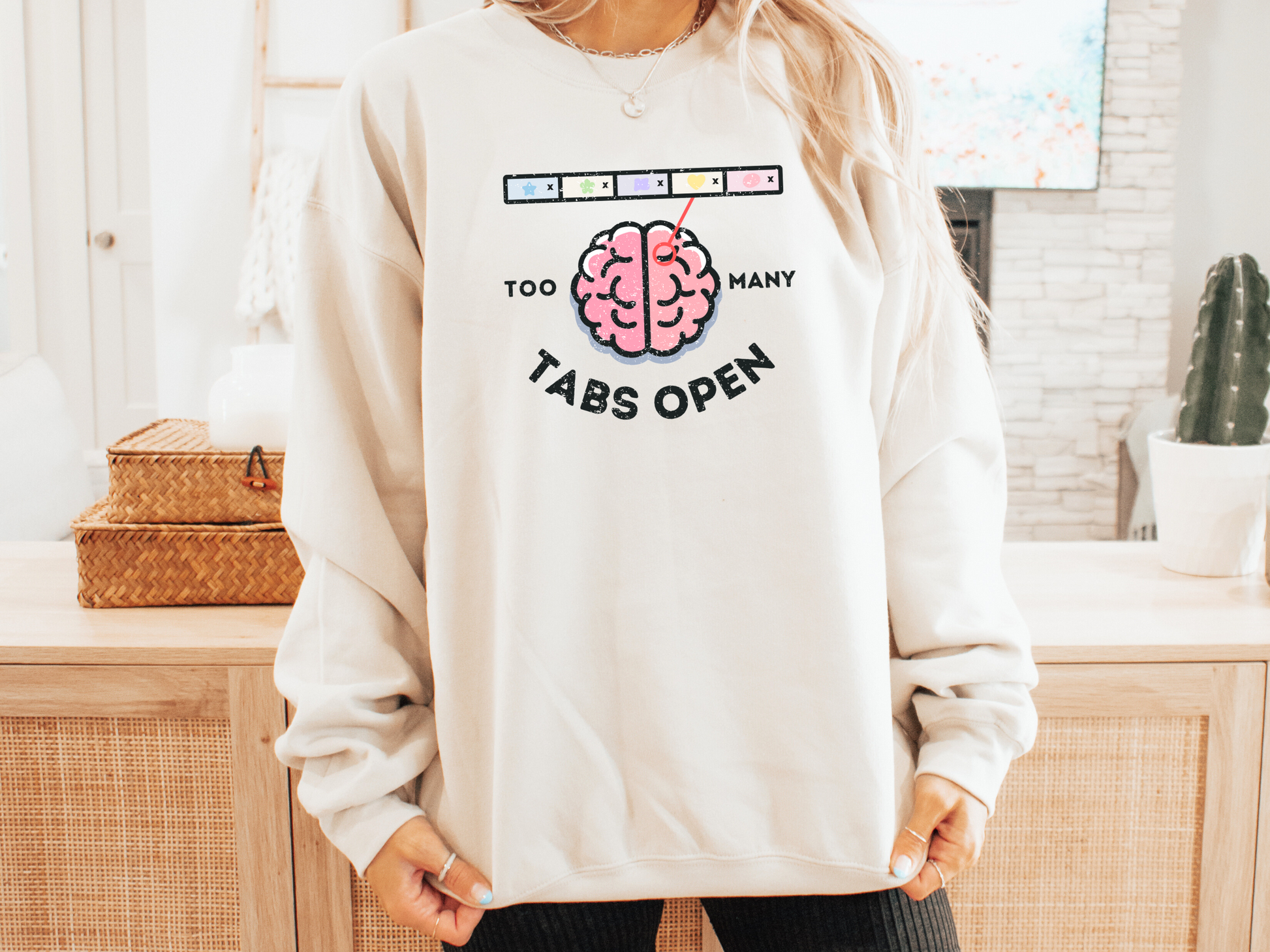 🧠 ADHD "Too Many Tabs" Crewneck Sweatshirt - Funny Graphic Unisex Shirt