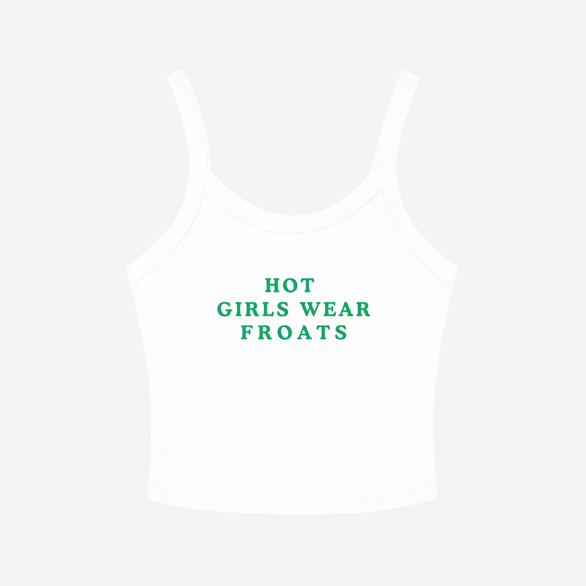💚 Defy gravity and the fashion status quo in this cheeky, Elphaba-coded tank top. Inspired by the misunderstood icon herself, this piece is for the girls, gays, and theys who know a froat (that’s a freaky little coat-dress moment, obviously) is a lifestyle, not just a look.